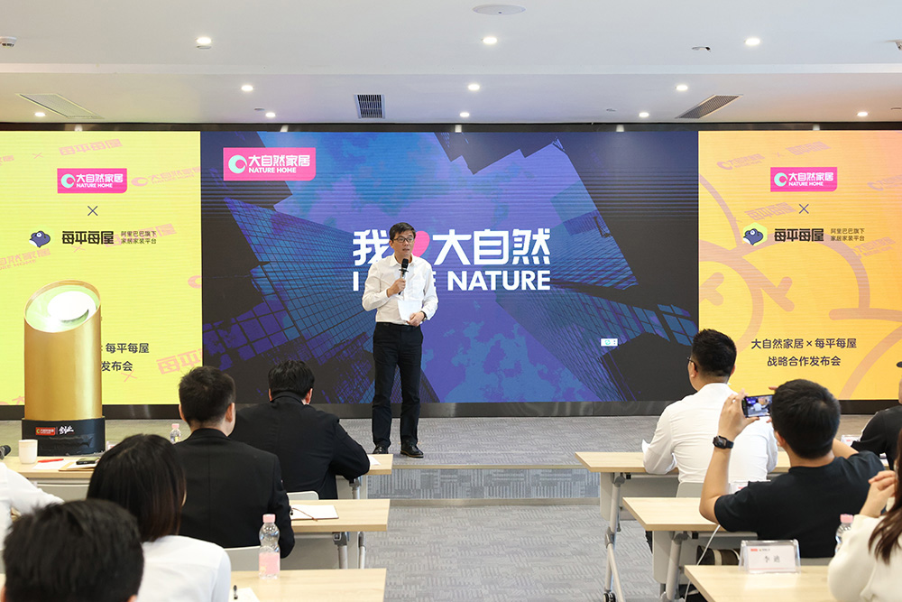 阿里巴巴每平每屋·小店業(yè)務(wù)負責人戰(zhàn)秋旭攜團隊專程從杭州趕來參加本次發(fā)布會。大自然家居集團副總裁兼品牌部總經(jīng)理林皓、集團副總裁兼地板集團總裁佘嘉浚也隆重出席了會議。