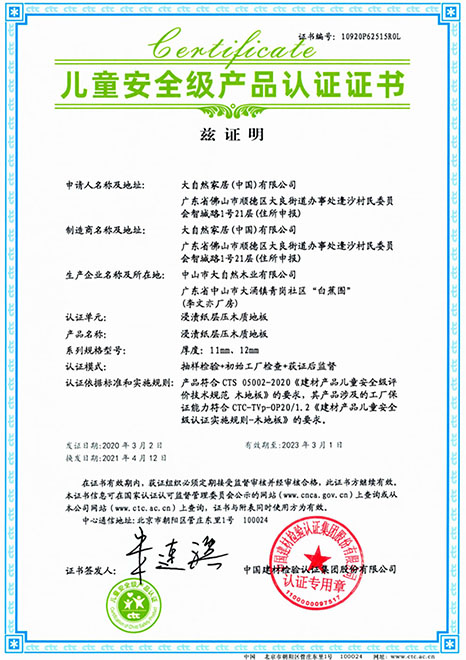 在準確把握“環(huán)保、健康”的消費需求之后,大自然家居研究院通過技術(shù)攻關(guān),開發(fā)出零醛智造技術(shù)。這也成為大自然強化地板的“健康密碼”,它采用高防潮高密度MDI環(huán)?;?,生產(chǎn)過程零醛添加,甲醛釋放限量采用新國標最嚴苛的ENF級,產(chǎn)品獲得“兒童安全級認證”。