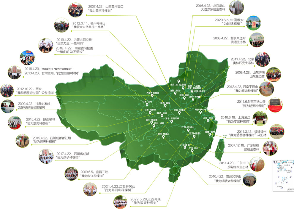 一、實施“中國綠色版圖”工程。從2006年開始,該集團(tuán)與中國綠化基金會合作,已連續(xù)2次簽訂共計2000萬的合作協(xié)議,數(shù)年來已累計向中國綠化基金會捐資超過1500萬元,每年開展植樹活動,至今已在國內(nèi)外19個地區(qū)種植了27片生態(tài)林,植樹超80萬棵,種植面積超102萬m²。即使在近幾年的疫情期間,也沒有中斷過。