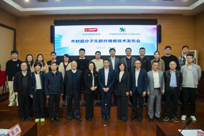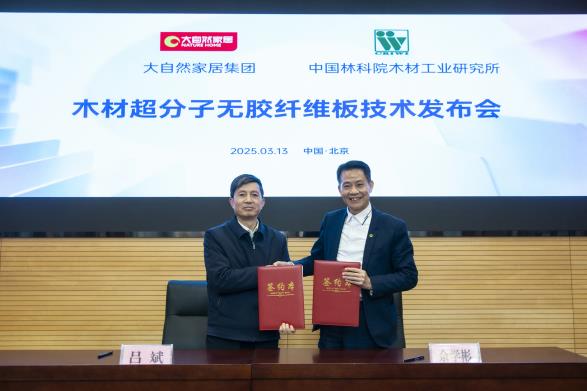 2025年3月13日,中國(guó)林業(yè)科學(xué)研究院木材工業(yè)研究所與大自然家居(中國(guó))有限公司在北京共同發(fā)布“木材超分子無膠纖維板技術(shù)”