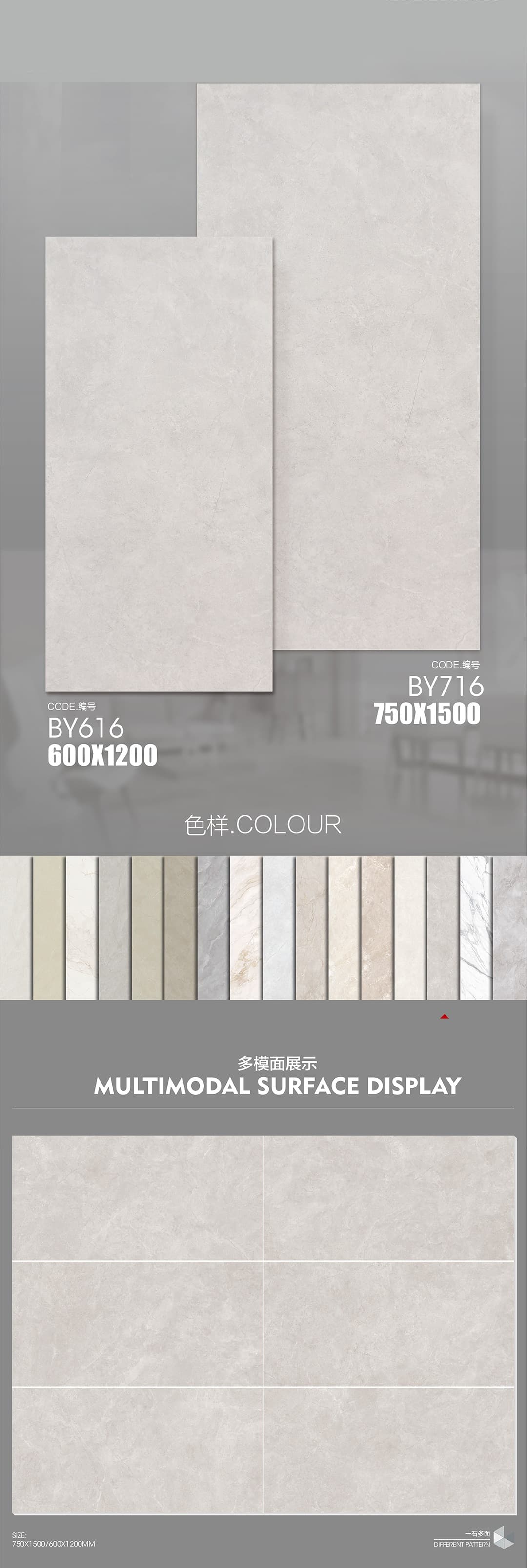 | 產(chǎn)品特性 | 表面柔和,防污效果強(qiáng),防滑R10指標(biāo)高,抗折強(qiáng)度好 |
